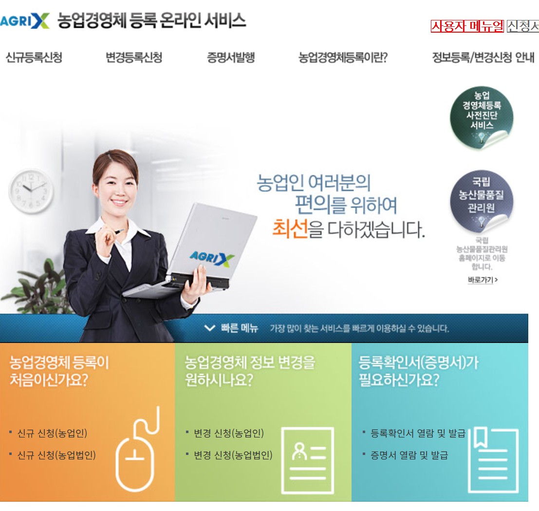 - 농업경영체등록 온라인 서비스 접속 : 농림사업정보시스템으로 이동합니다.