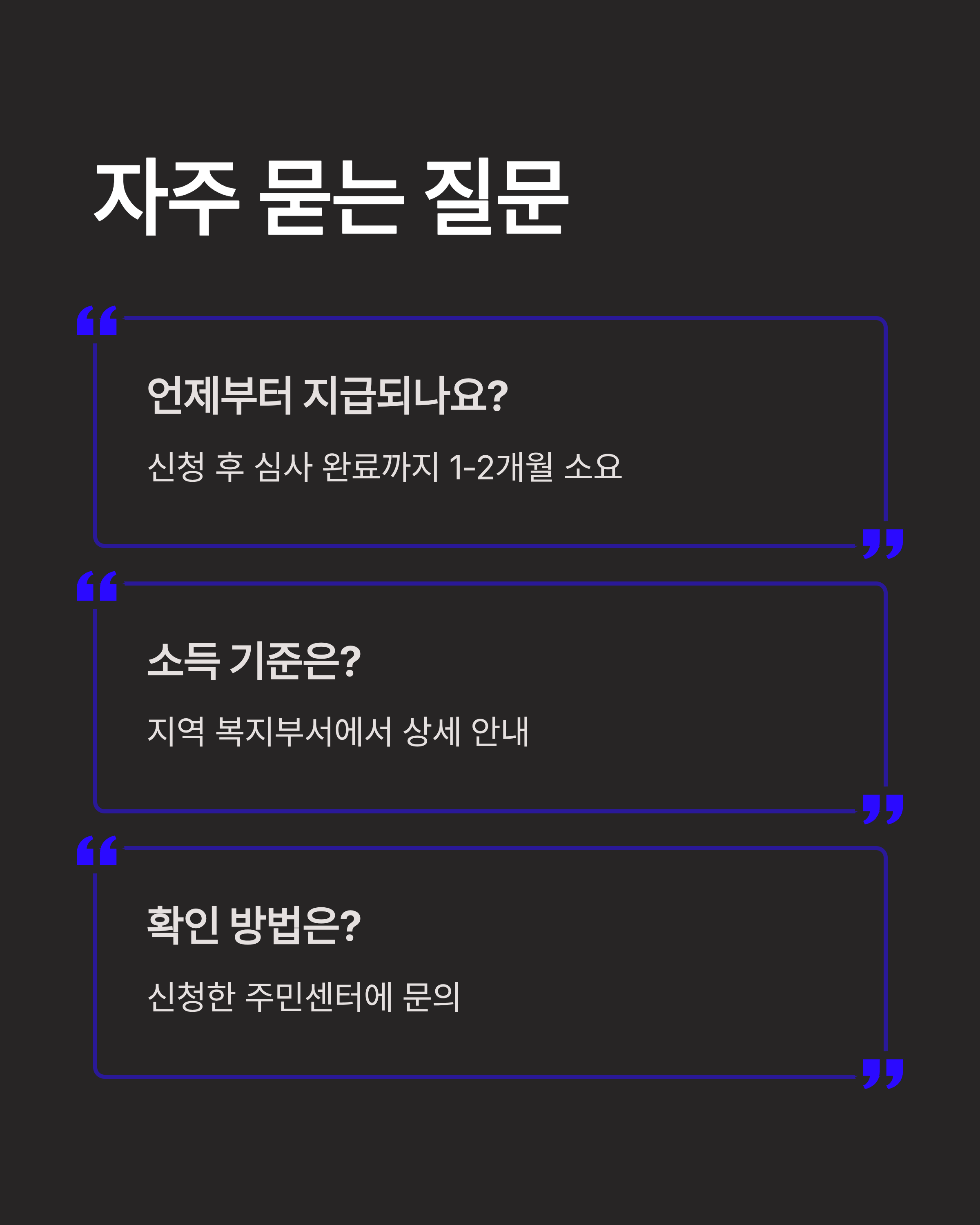- 소득 기준은 해당 지역의 복지부서에서 안내합니다.
