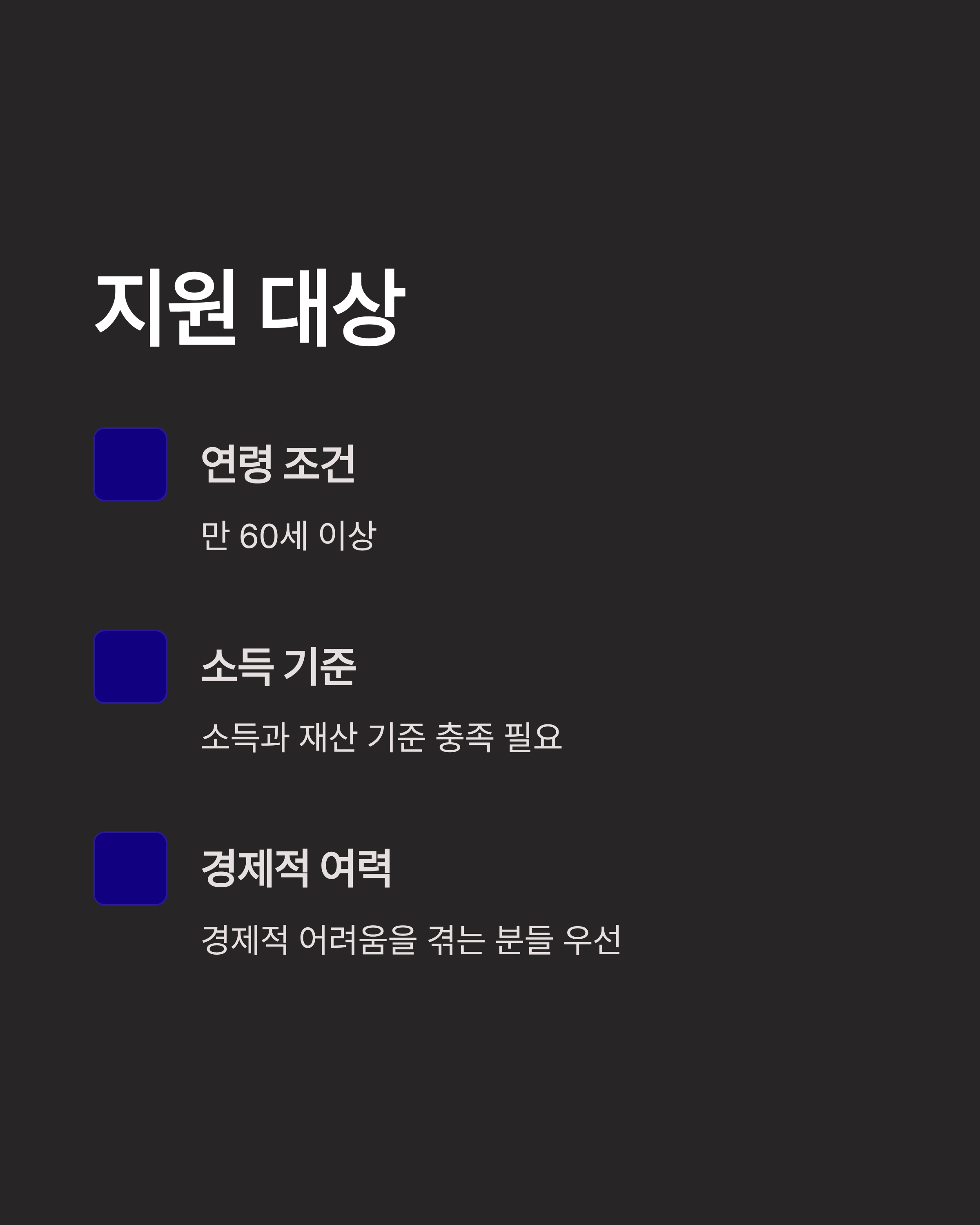 | 만 60세 이상 | 소득과 재산 기준을 충족해야 함 |