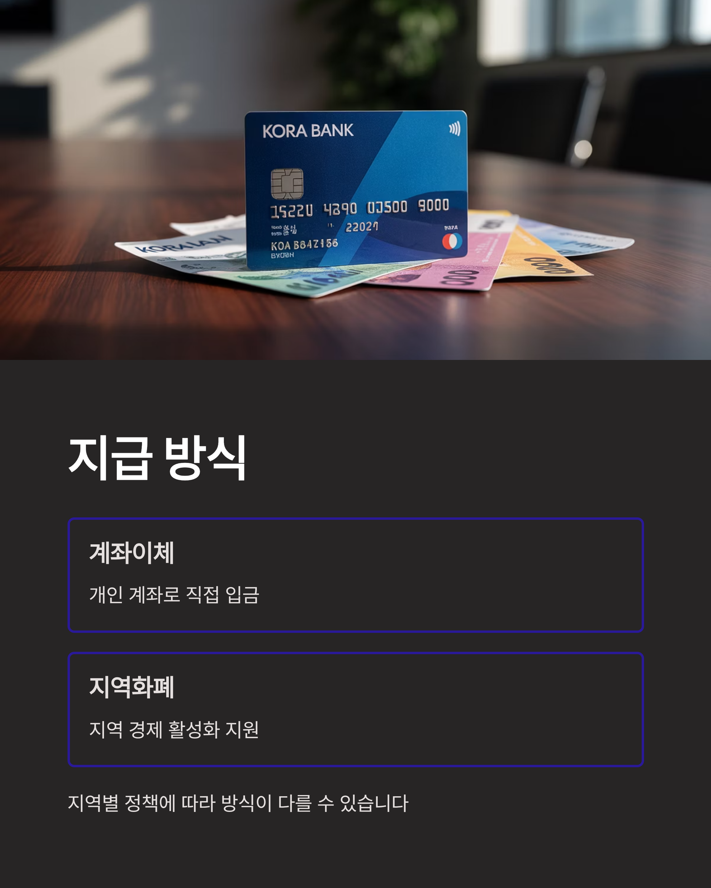- 주로 계좌이체와 지역화폐로 지급됩니다.