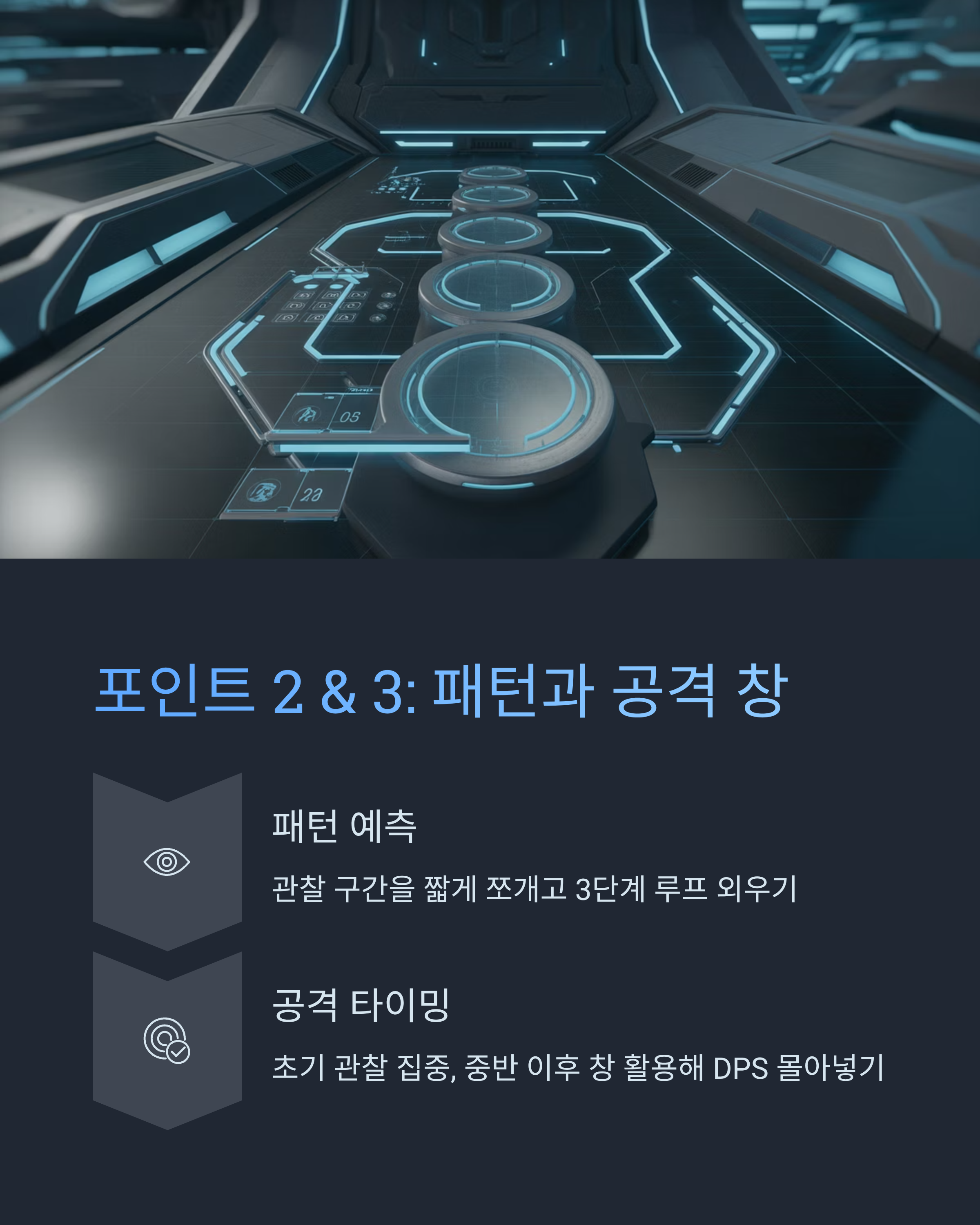 - 핵심 포커스: 보스 패턴의 반복 구조, 타이밍 창, 팀 간 의사소통 포인트