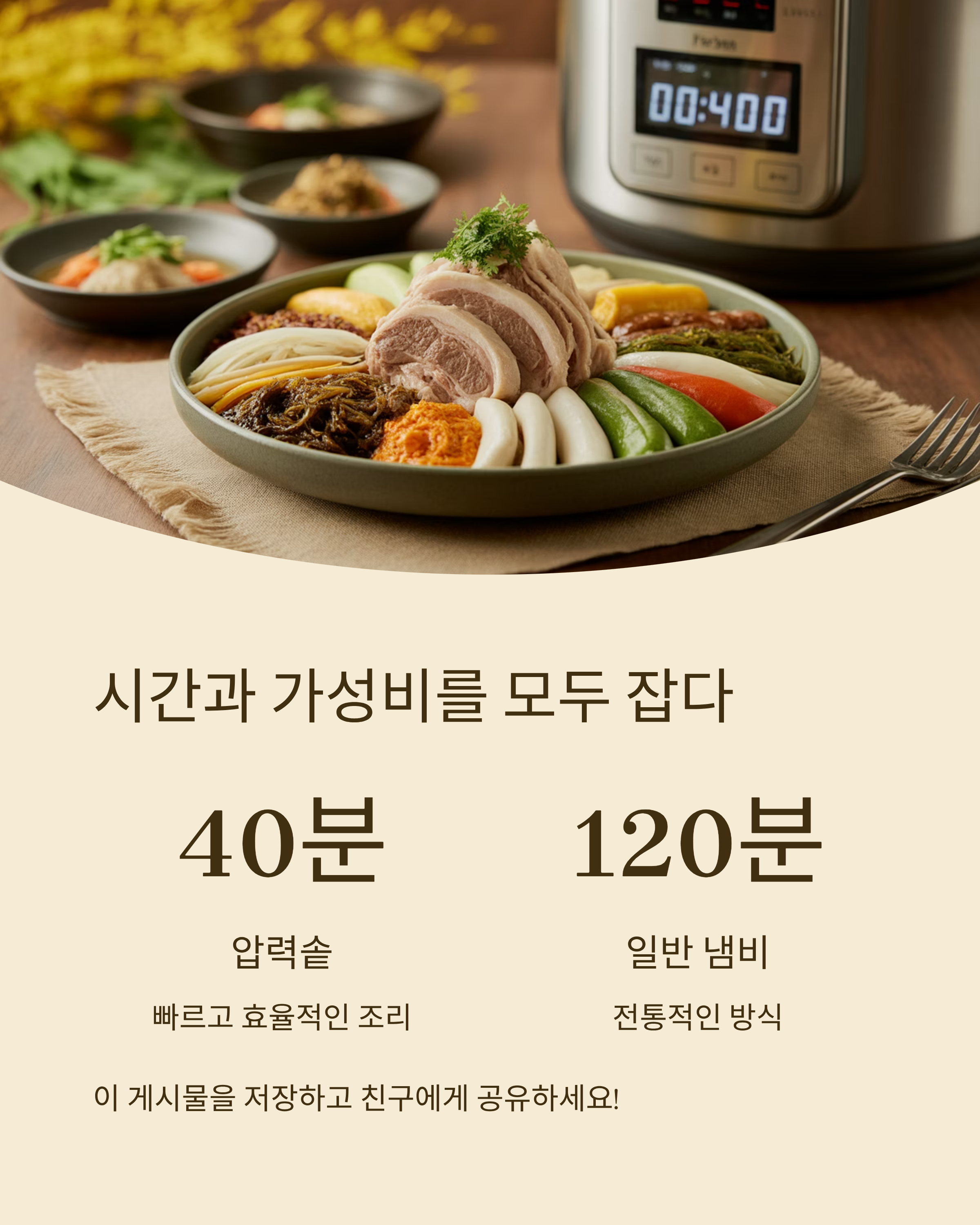 - **시간 절약 & 초특급 부드러움**: 압력솥이 정답!